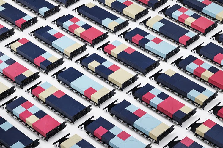 The design studios have worked closely with Graphcore to ensure the plastic tile system works smoothly with the technical aspects, which has involved creating “custom sized heat sinks for the IPU chips” which has provided space to fit the tiles.